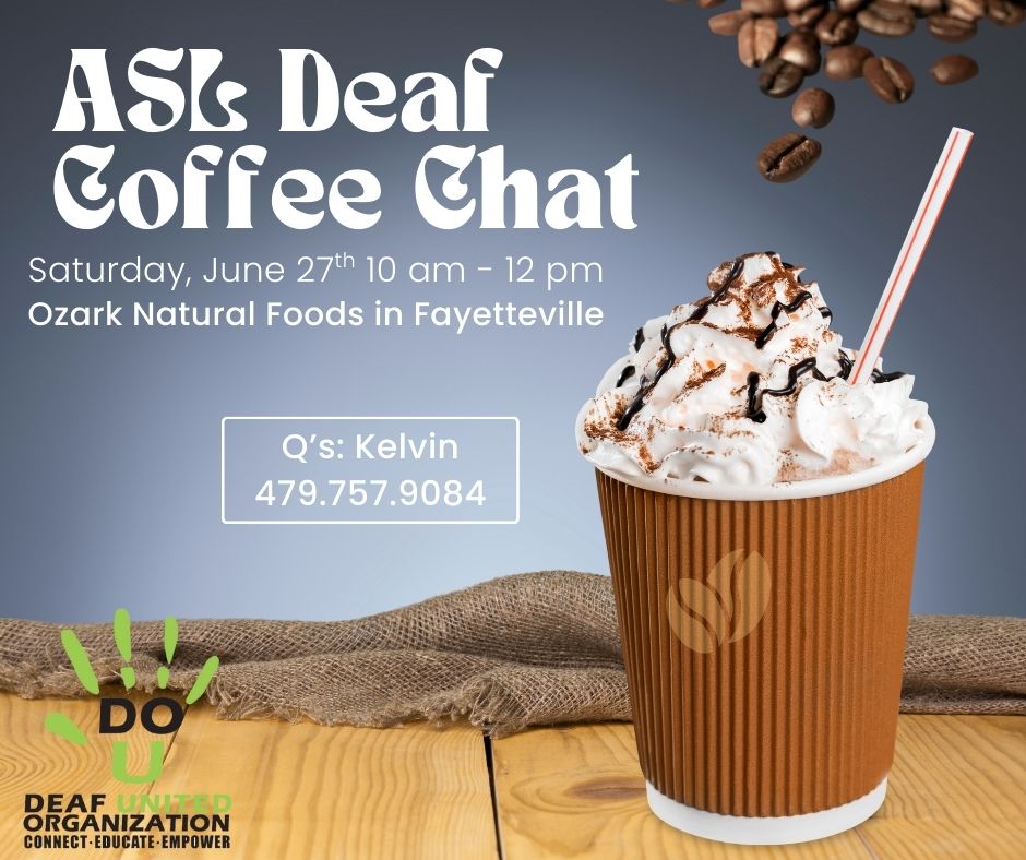 sat27jun10:00 amsat12:00 pmASL Deaf Coffee Chat – June 27Join us at Ozark Natural Foods – June 2710:00 am – 12:00 pm(GMT-05:00) 380 N College Ave